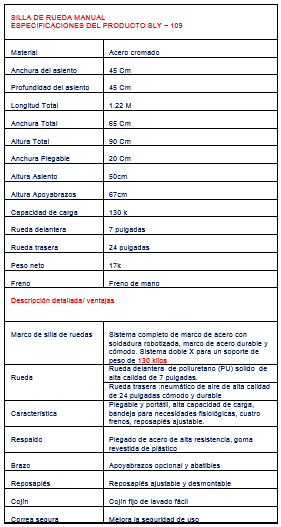 SILLA DE RUEDA MANUAL ACERO SLY 109